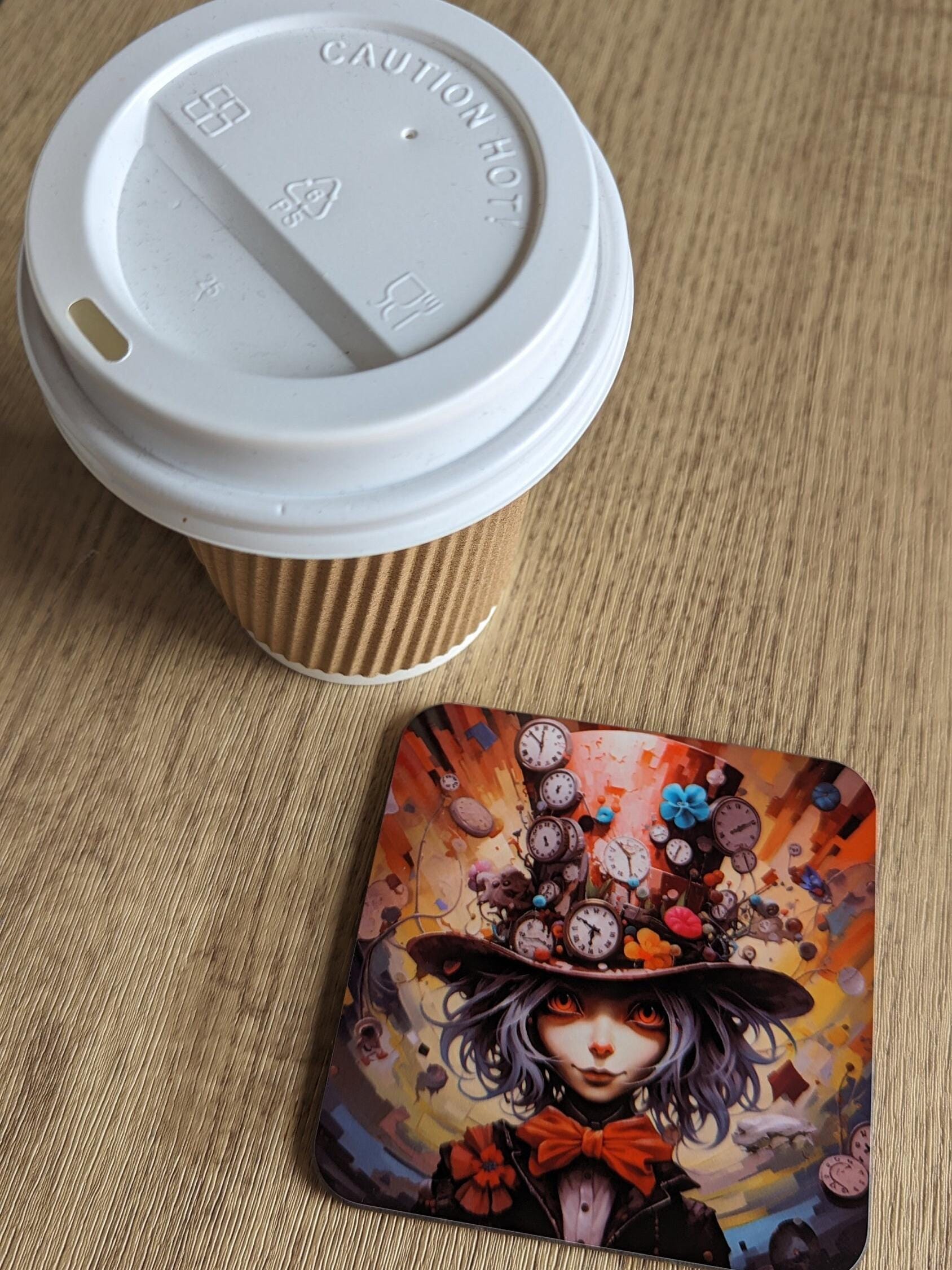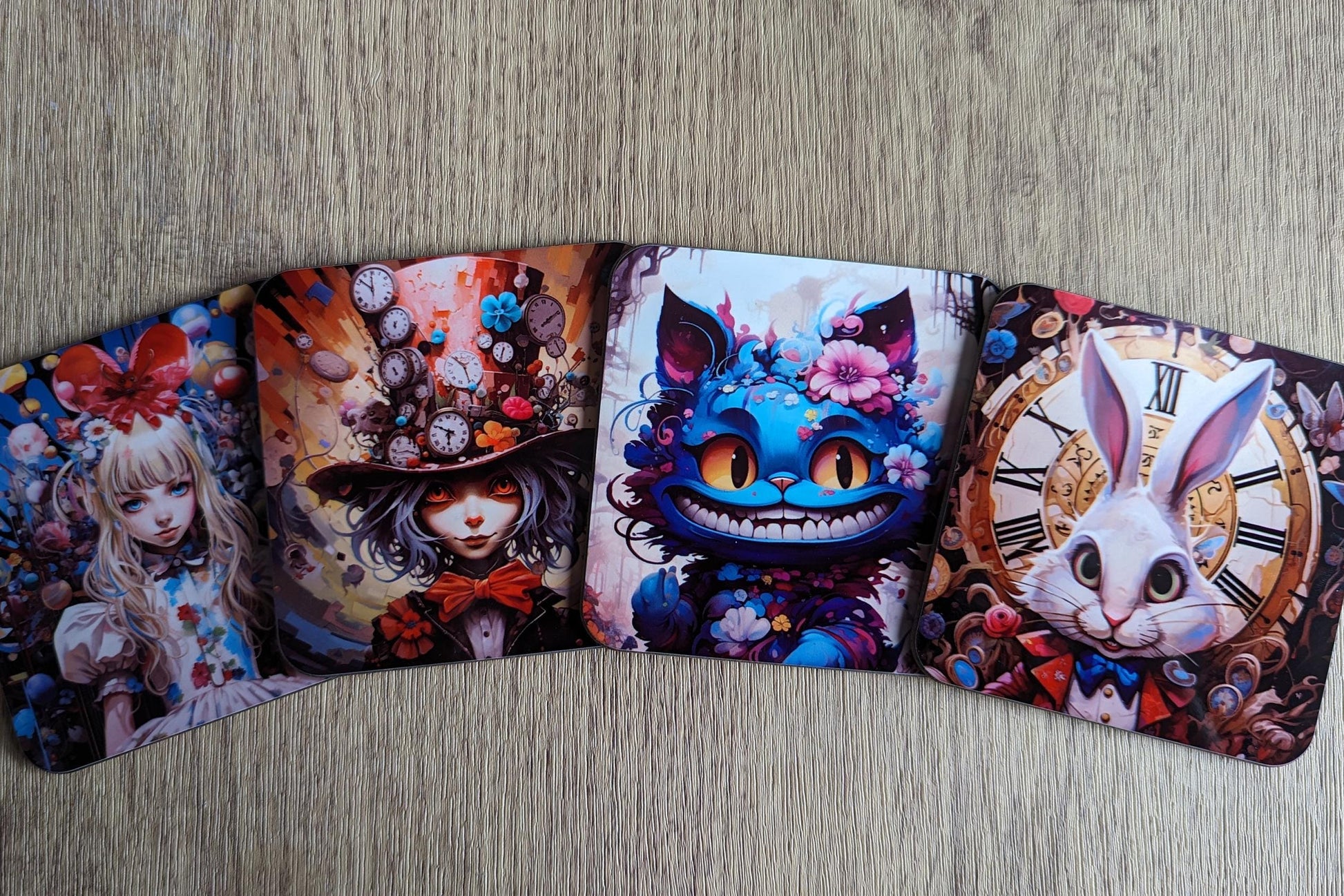 This set of 4 chic, exciting, vibrant and modern coasters adorned with highly detailed and vivid re-imagining of the main characters of this classic book in an Eastern pop style, like an anime or manga. They are heavily inspired by interpretations such as American McGee or Tim Burton's "Alice's", but a little less dark and a little more chaotic and busy. These coasters will be the talk of your coffee table and make a bold statement or those who choose them.