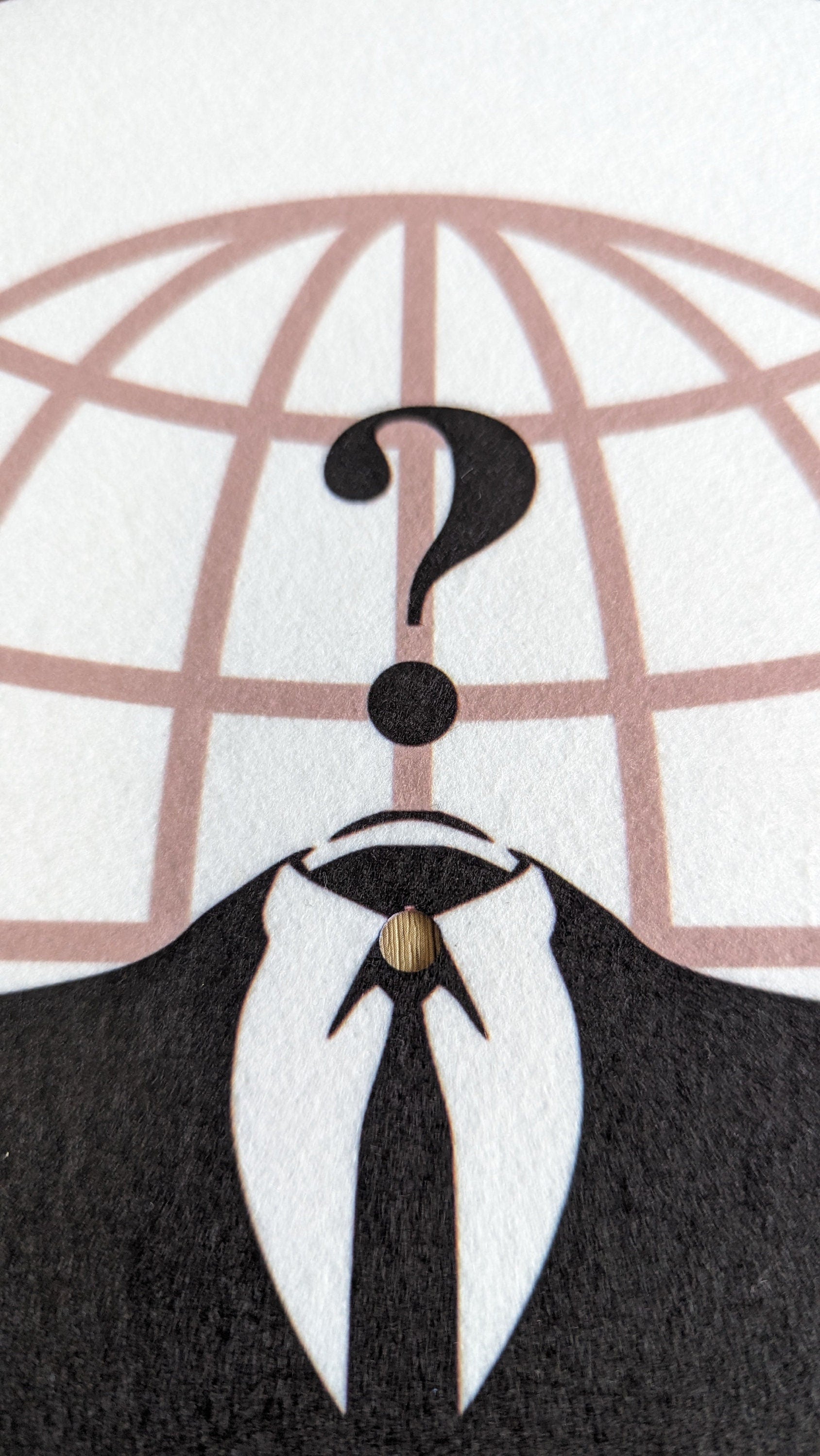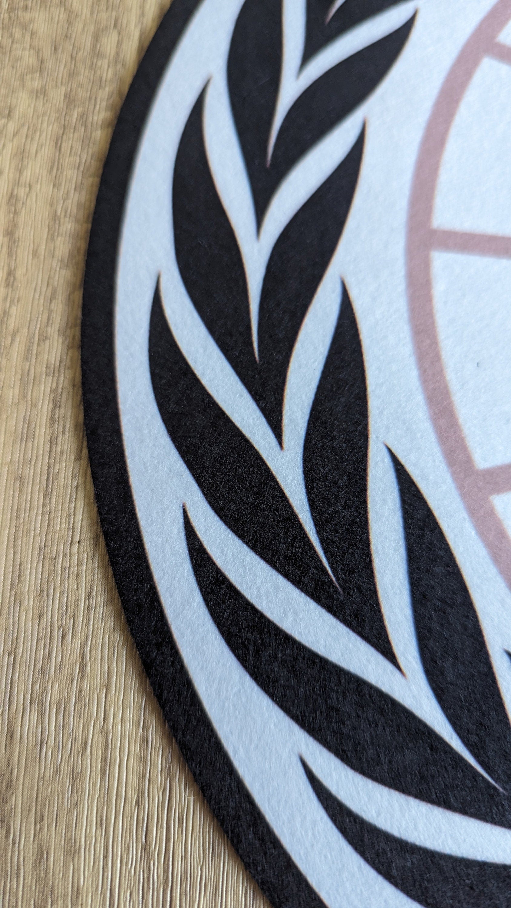 A handmade sublimated felt slip mat in either 12" or 7" Diameter. The design is of the hacker group Anonymous. Anonymous is a loosely organized and decentralized collective of individuals who engage in online hacktivism and digital activism while concealing their identities behind the iconic Guy Fawkes masks and as represented here the headless man logo . Operating as a global entity without a central leadership, Anonymous uses its collective power to protest censorship, promote freedom of information, and challenge various perceived injustices in the digital realm, often through hacking, DDoS attacks, and other forms of online disruption..So, if you want to signal your support throw these mats onto your turntables, for a psy-op of your own.