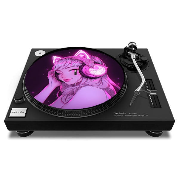 DJKitty Catgirl Slipmat - 7 & 12 inch LP Vinyl DJ Pro Turntable Slip Mat Record Player Technics 1210 DJ Turntablist