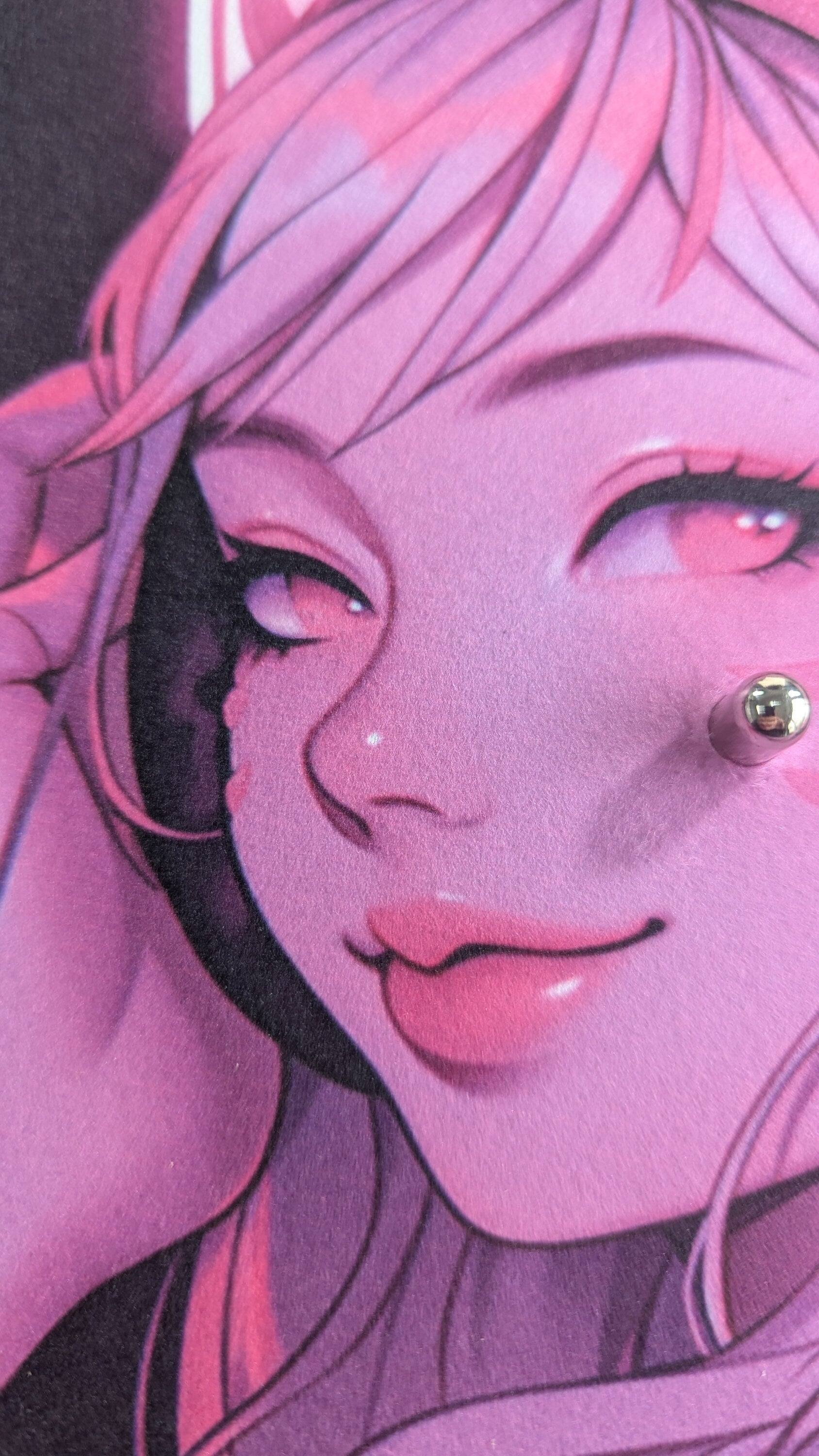 A handmade sublimated felt slip mat 12" Diameter. The design is a hentai inspired Catgirl girl DJ who ive christened DJKitty wearing pink neon illuminated headphones (猫娘, nekomusume), perfect for any otaku you may know, its sassy in a neon style pink for a seductive atmosphere without being overtly sexual. This is a unique piece, hand crafted by the designer and cant be found anywhere else online. A popular design at the shows who attracted by its bold design and vivid colour scheme, bought by both men and women.