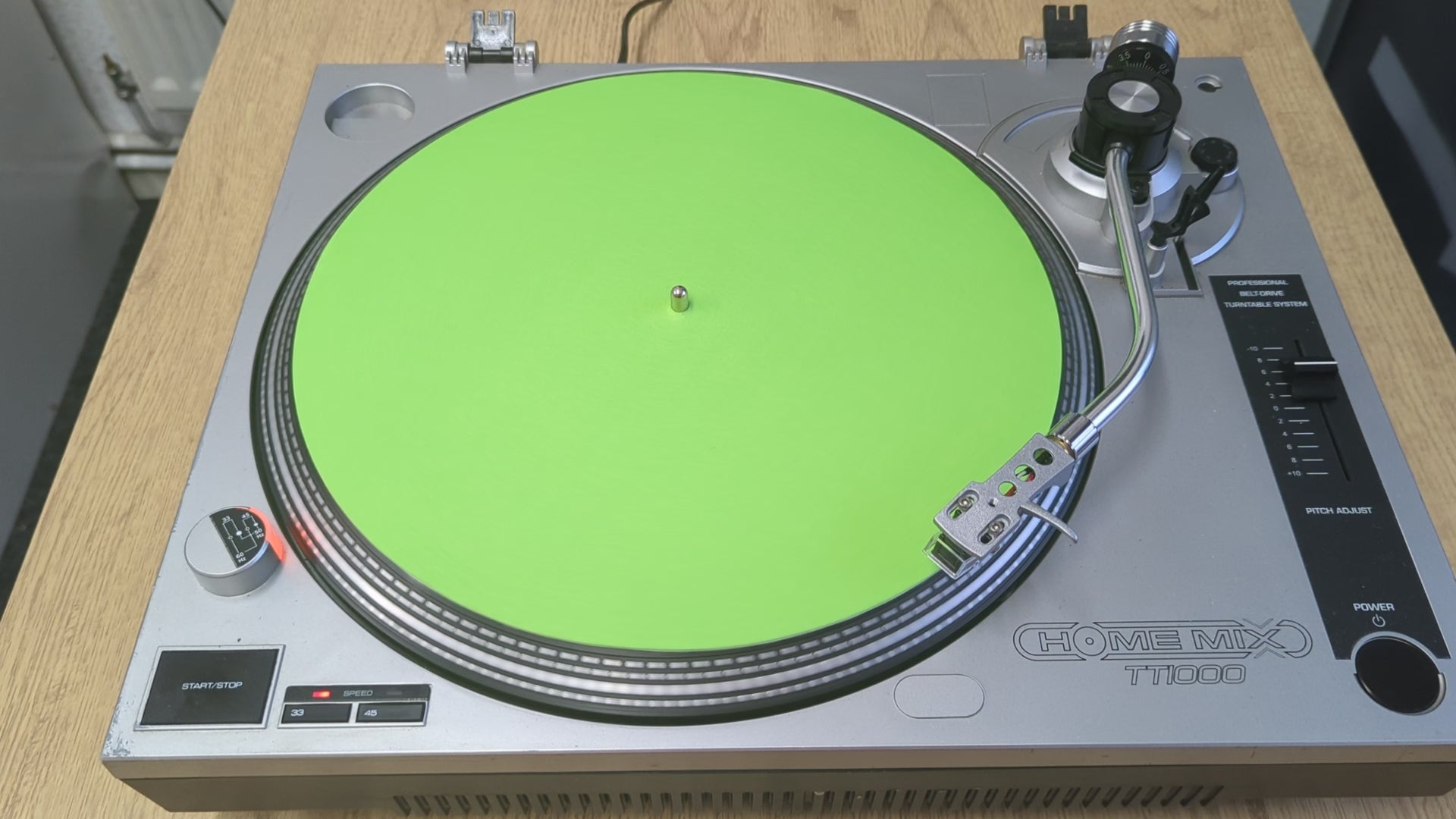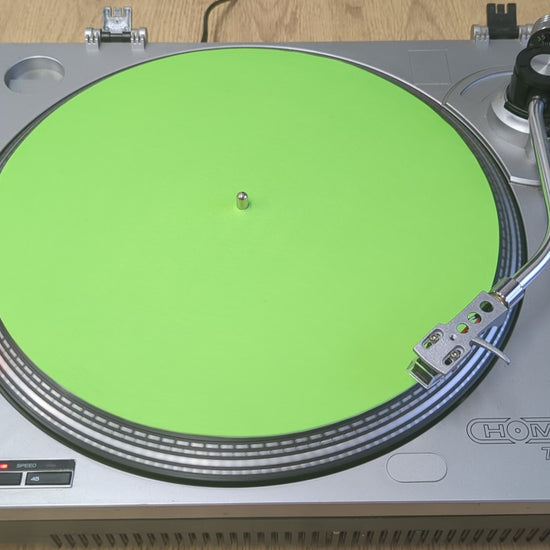 "A punch of pure green on your platter — minimal, bold, and built for serious vinyl handling."
