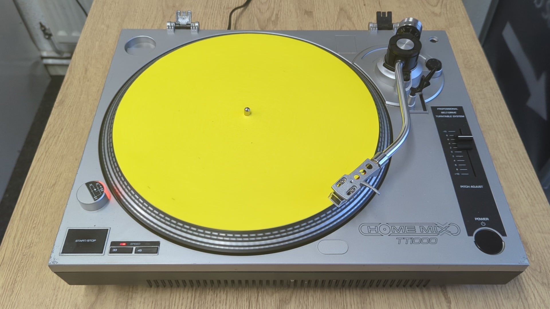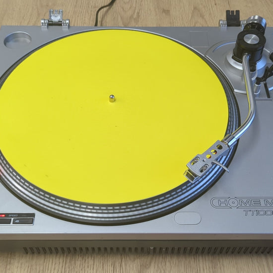 "A punch of pure yellow on your platter — minimal, bold, and built for serious vinyl handling."