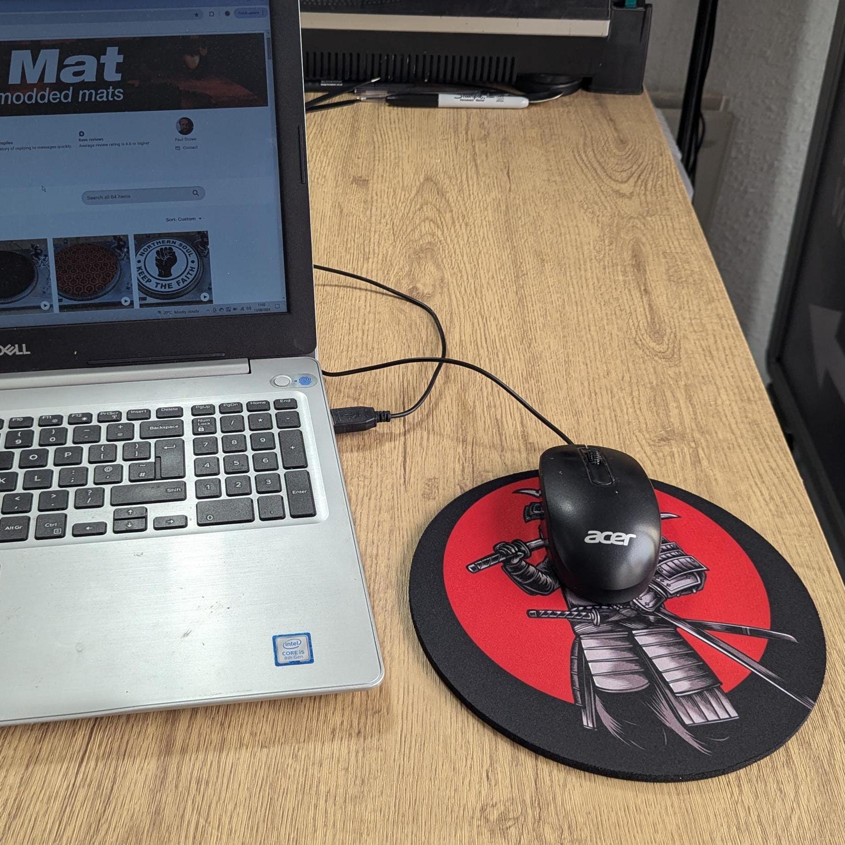 Samurai Circular Mouse Pad - Round Computer Mat - Desktop mousepad