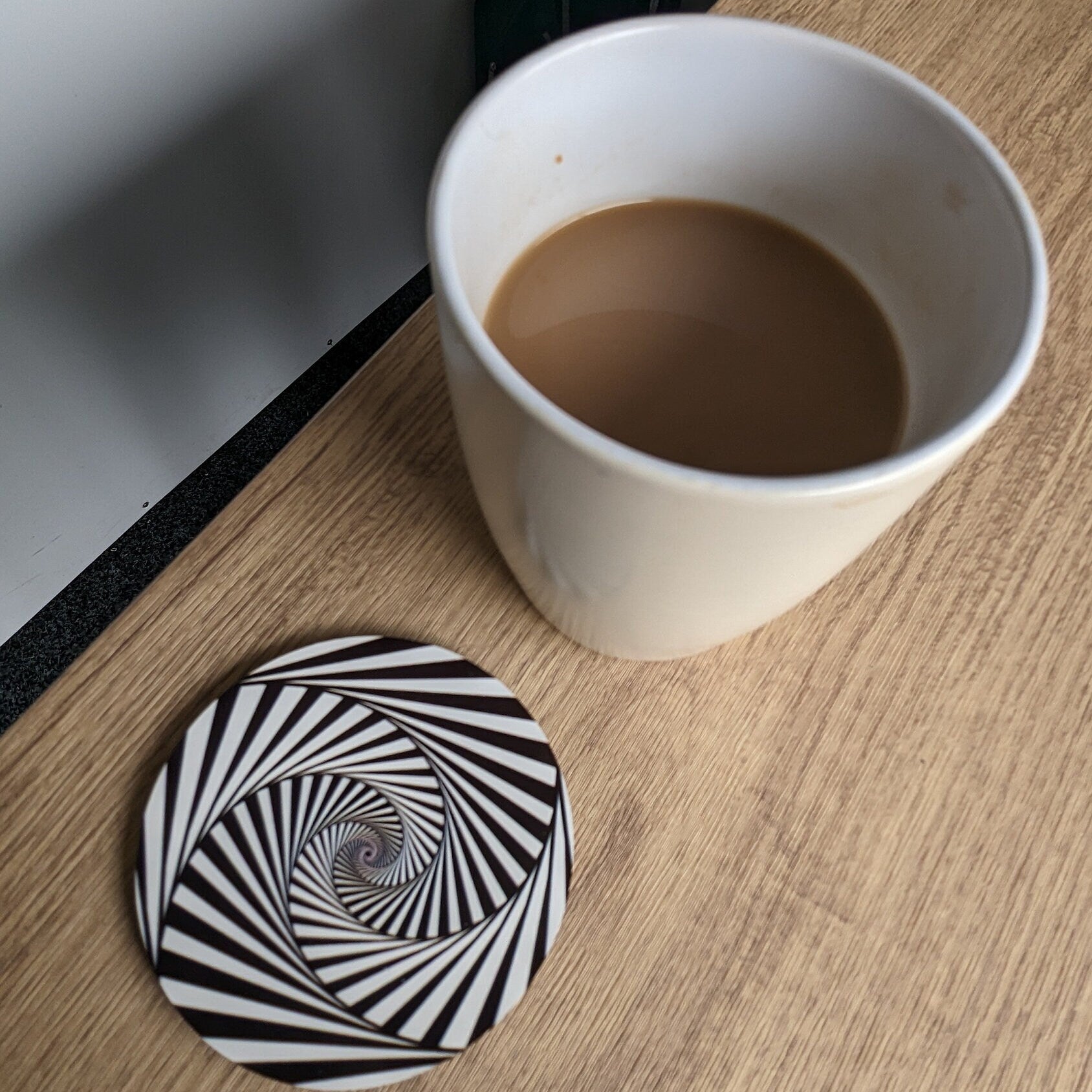 Dress up your home or office space with these inward spiral sublimated coasters!