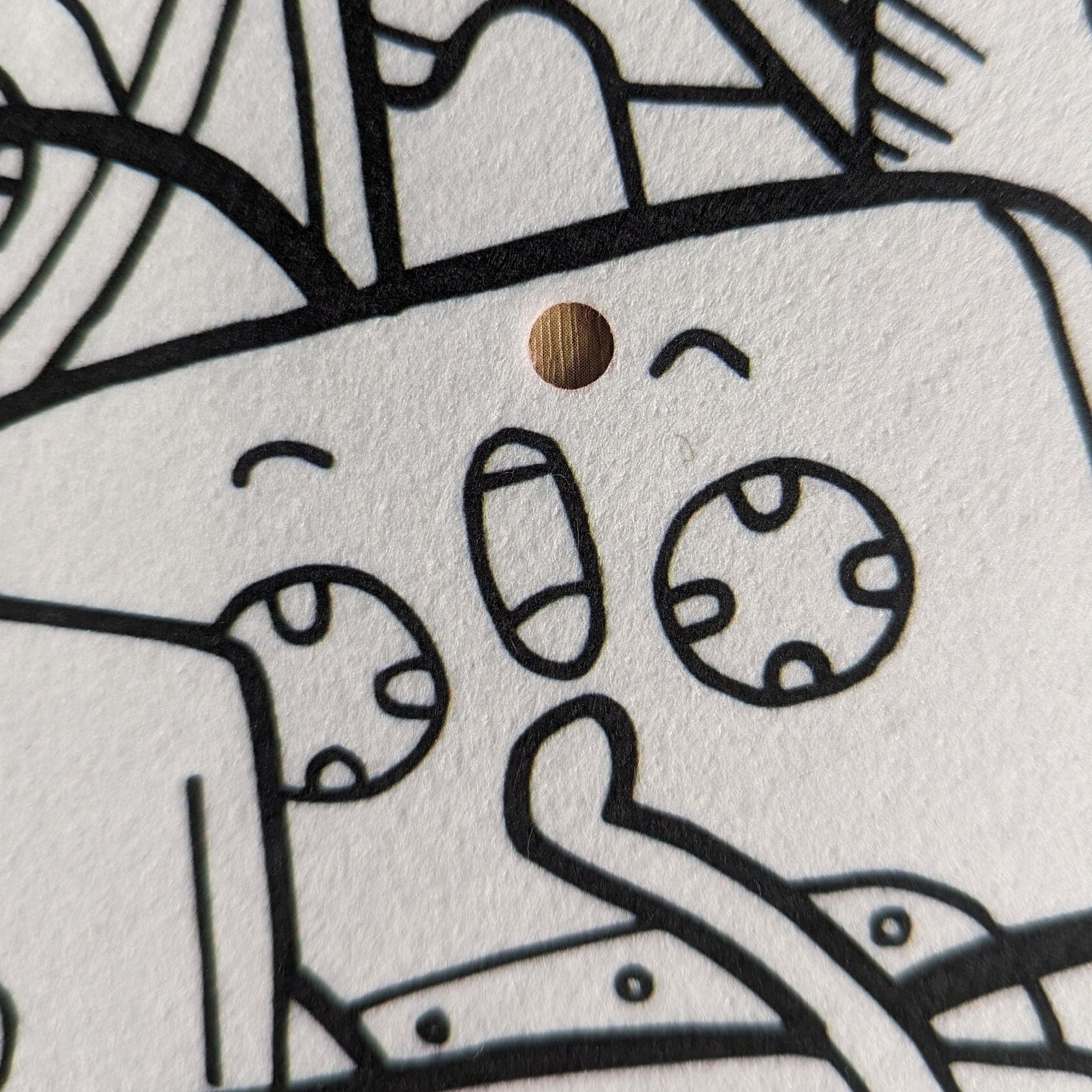 "The design is a cute black and white line art cat themed cute kawaii design thats super fun and looks great as it spins, Also.. I don't often mention this.. BUT.. its made of felt -and felts can be coloured in.. Just saying - Its a lot of fun. So either enjoy it as it is or get your felt tips or marker pens out. This is so highly customisable so the finished product will be completely unique to your. Because of the nature of felt, the ink spreads and bleeds which if you have skill (and of course you do) you can make some pretty trippy colour bleeds. "