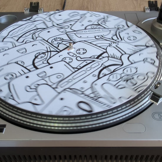 This vibrant slipmat nods to the cassette culture of the past, with layered artwork bursting with nostalgia. Whether you're spinning rare grooves or hip-hop instrumentals, the Tapes Slipmat brings that lo-fi urban graffiti fun and fresh feel with hi-fi performance.