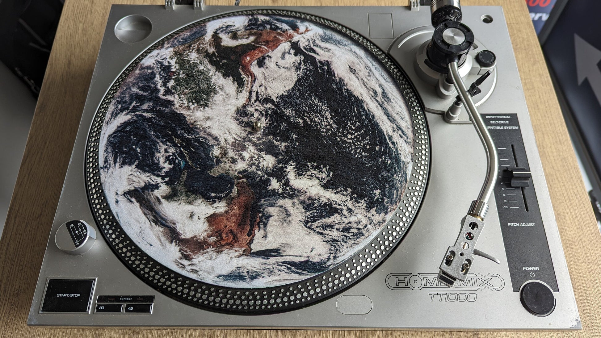 "The design is a classic NASA photograph of the Earth and it goes really well with our other product - The Moon - should you have a second turntable - or if your feeling cheeky or that way inclined - the Flat Earth Slipmat"