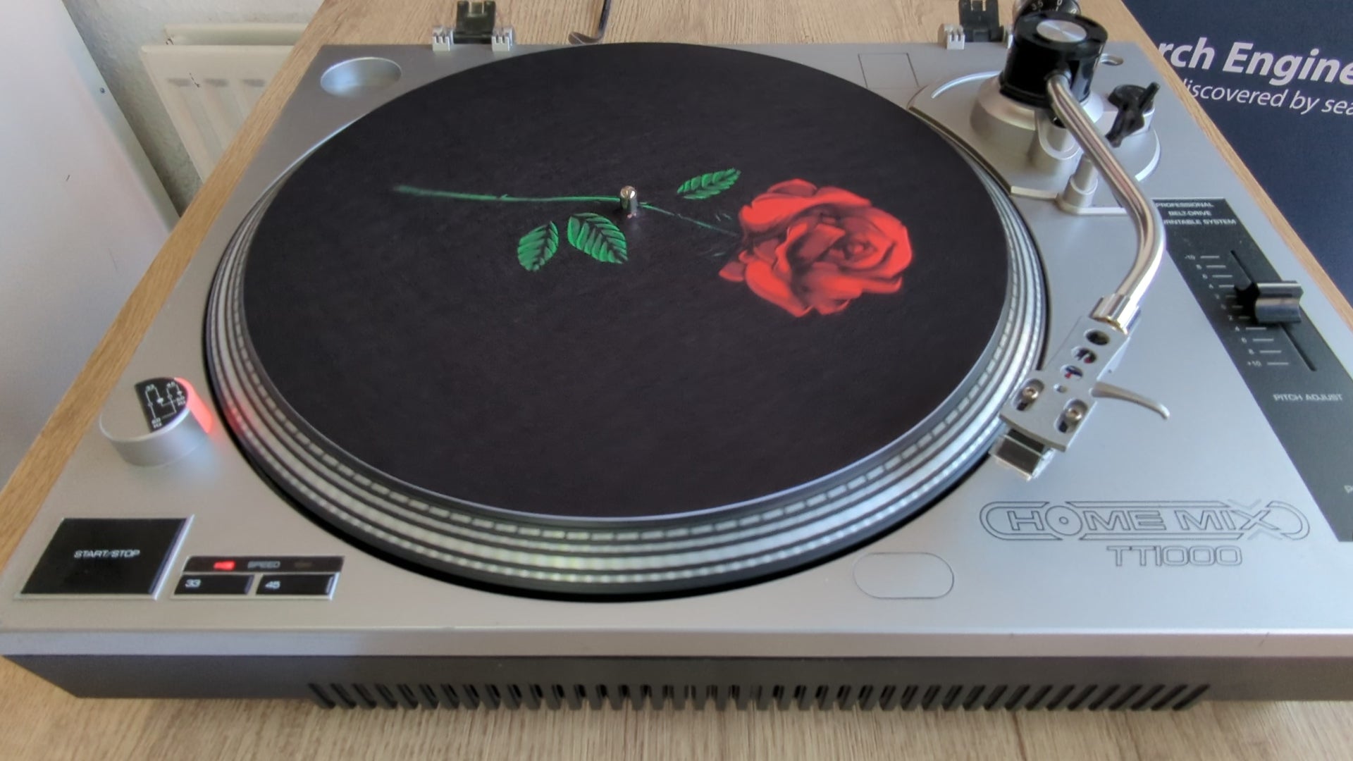 "The design is a single red rose on a black background, could be a reference maybe? I dont know though. I don't want to be anyone's Personal Jesus, as my own Policy of Truth doesn't allow me to Let Anyone Down again even though They Just Cant Get Enough... anyway. Just put this on your turntable, let it spin and Enjoy the Silence. Or maybe you want to switch your turntable from being a beast into a beauty, Be our Guest :) So whether your a new romantic or just an old fashioned romantic, everyone loves the rose design of our slip mat."