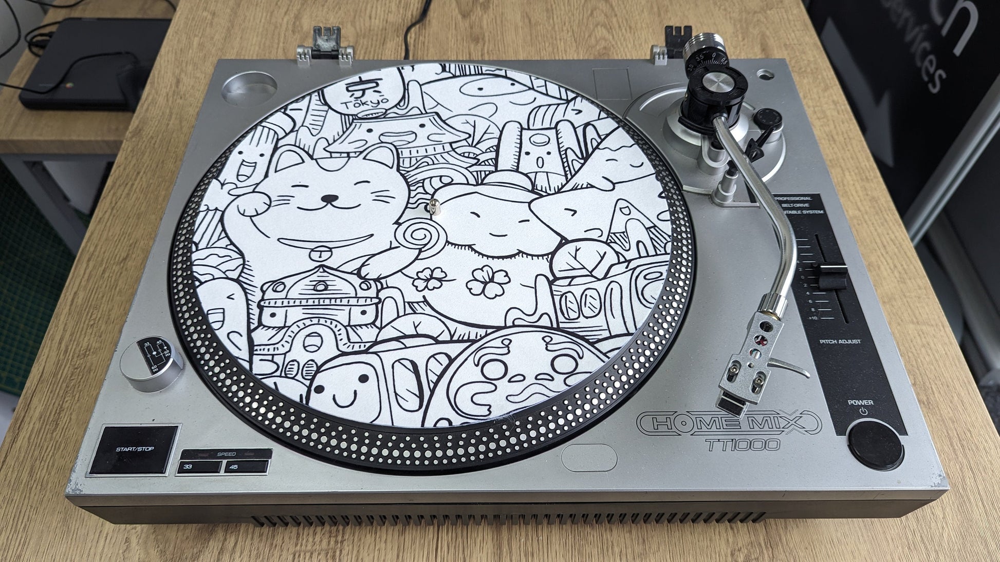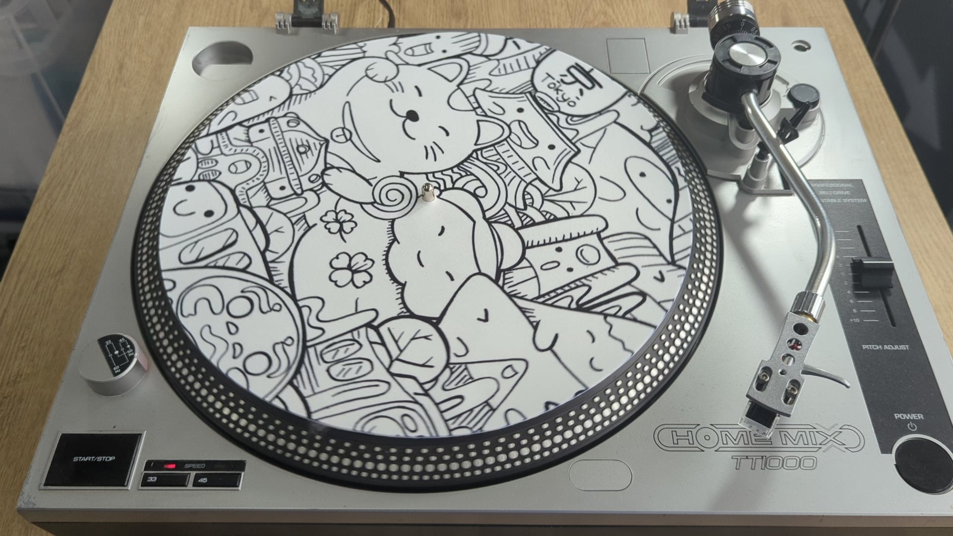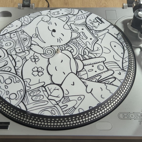 The Tokyo Slipmat fuses minimalist design with explosive colour theory — a crisp black-and-white foundation. Perfect for Kawaii focused street DJs and collectors who want a mat that feels as alive and dynamic as the vinyl it spins.