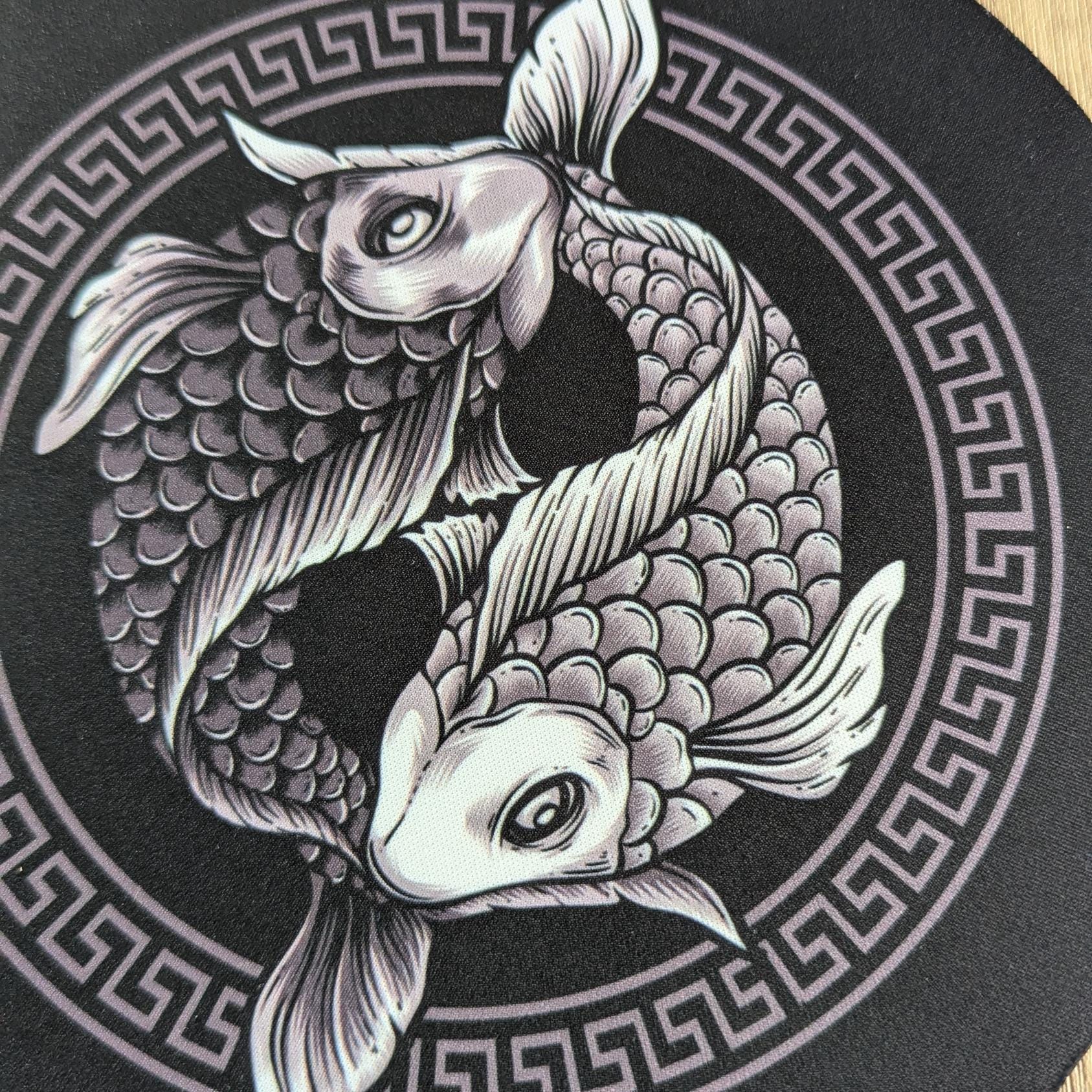 Yin Yang Koi Carp round or circular Computer Mat - Desktop mousepad - fish gift
